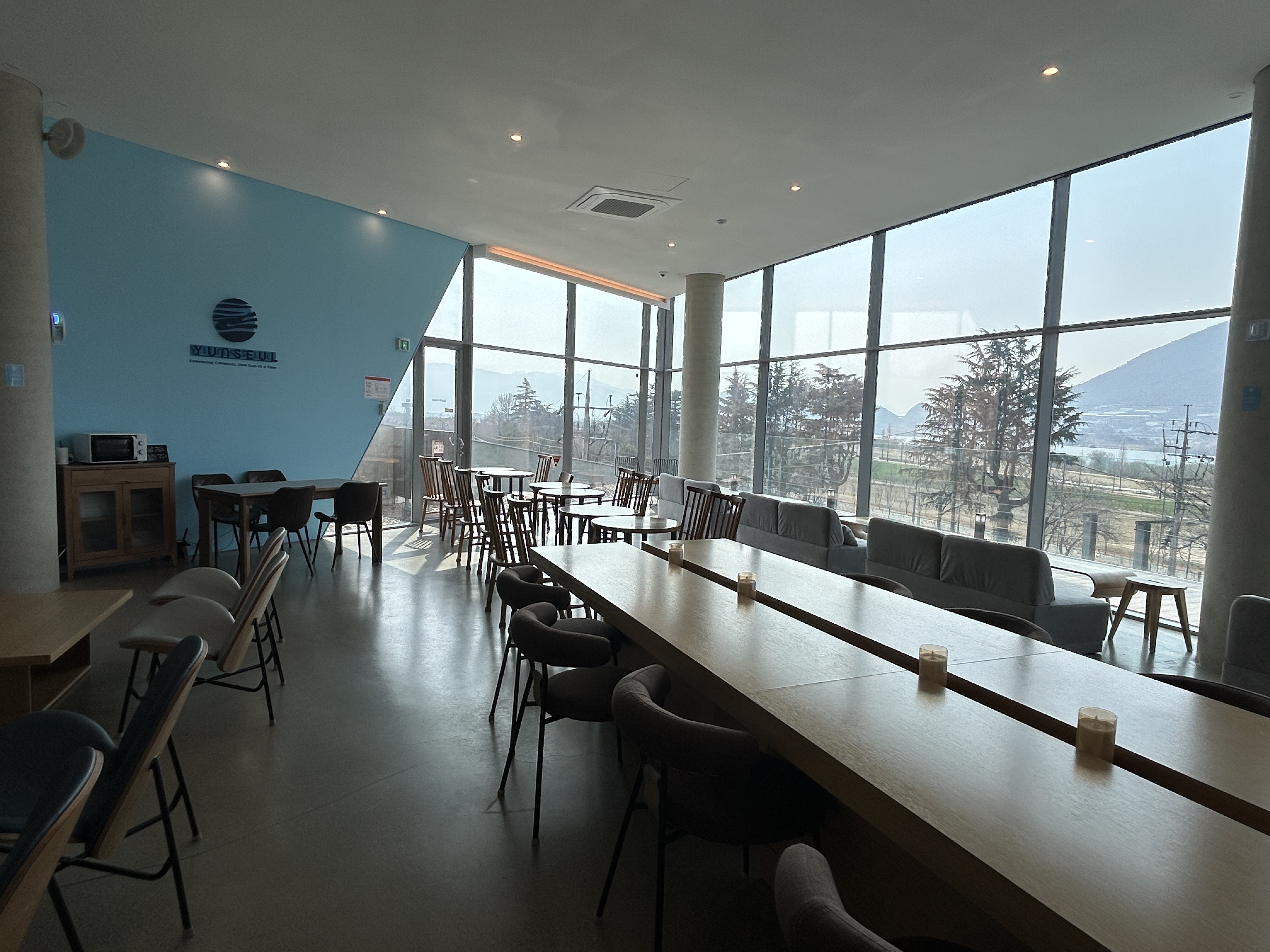 탁 트인 야외 데크까지 갖춰져 있어서 날씨 좋은 날엔 정말 힐링 그 자체예요. 봄이 오기 직전의 풍경인데도 이렇게 예쁜데, 벚꽃 필 때는 얼마나 아름다울지 기대가 됩니다.